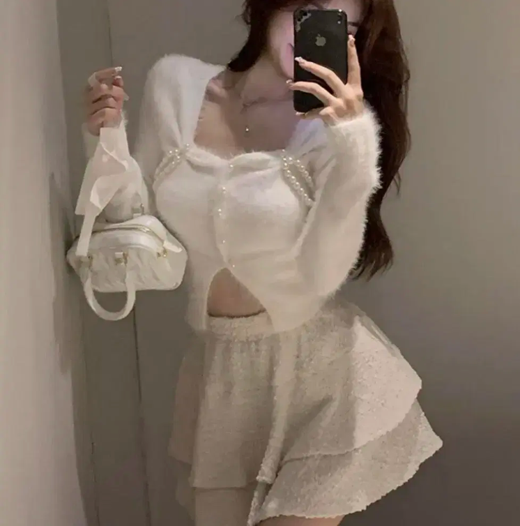 앙고라밍크 진주 크롭긴팔니트