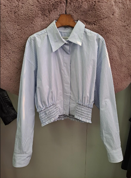 산드로 스모킹 웨이스트 크롭 블라우스