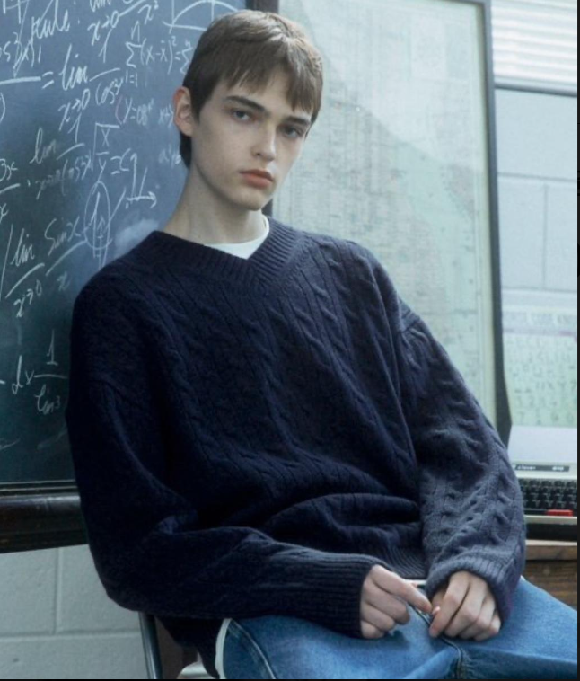 디써티원 케이블 v넥 브이넥 니트 네이비 1