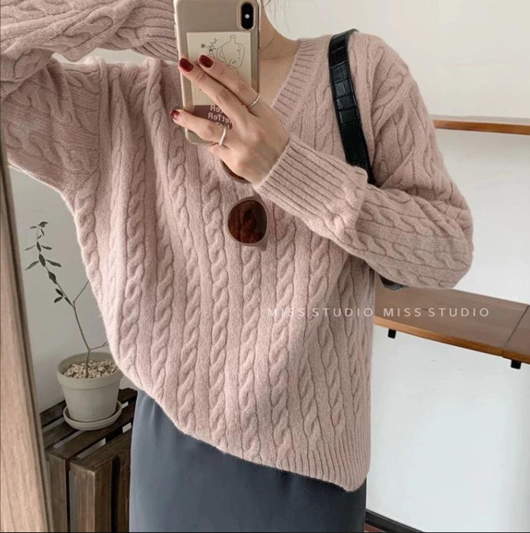 연핑크 꽈배기 니트