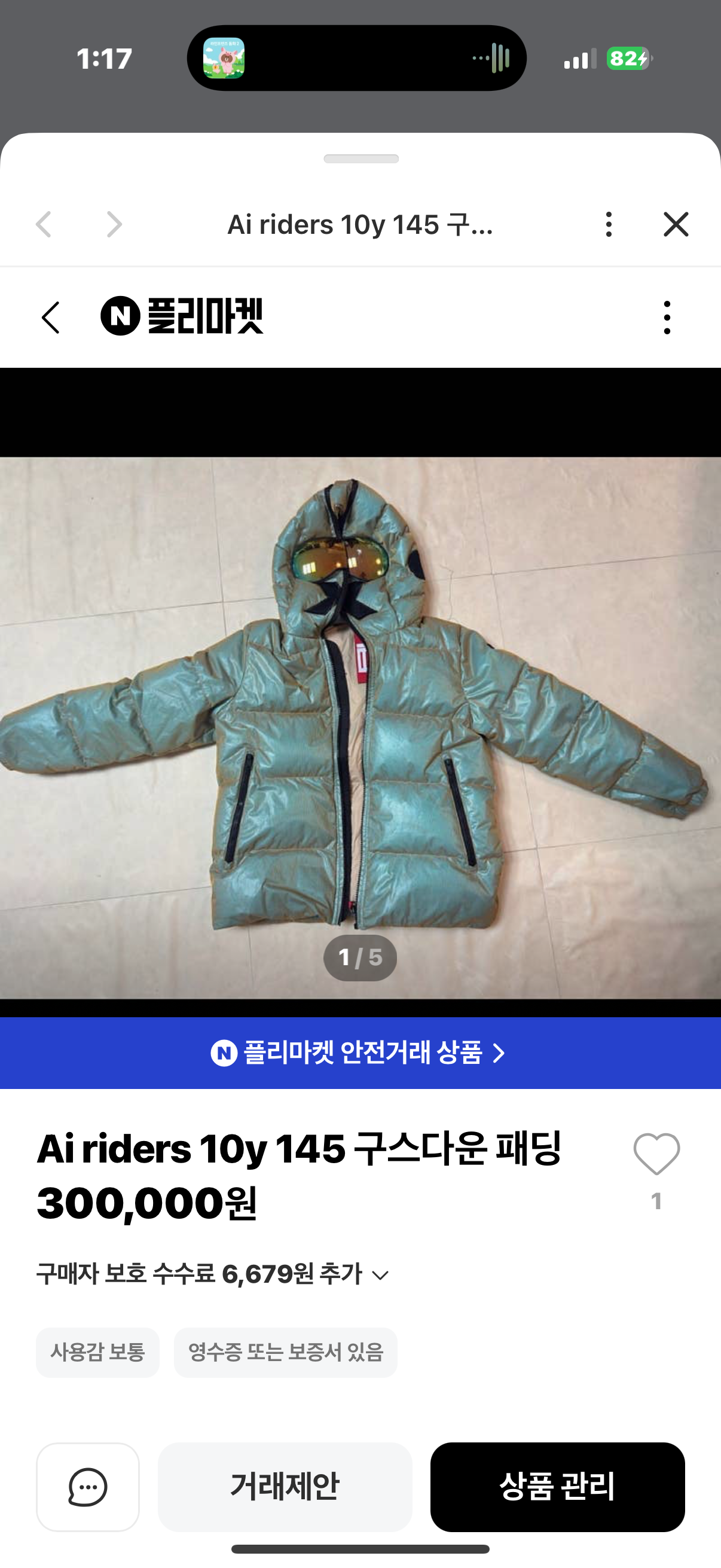 정품 무스너클 XXL 패딩점퍼 팝니다